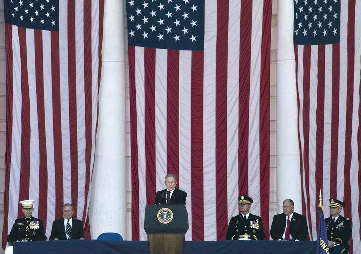 MAKE A MEME View Large Image Navy 060529-N-2383B-014 President George W. Bush delivers remarks during Memorial Day ceremonies held in the amphitheater of Arlington National Cemetery.jpg en Arlington Va May 29 2006 - President George W Bush delivers remarks during ...