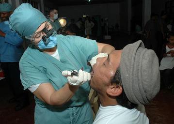 | Keywords: US Navy 060605-N-3931M-207 Cmdr. Jan Delorey-Lytle assigned to the Medical Treatment Facility aboard the U.S. Military Sealift Command (MSC) Hospital ship USNS Mercy (T-AH 19).jpg  en Jolo Philippines June 5 2006 - Cmdr Jan Delorey-Lytle assigned to the Medical Treatment Facility aboard the U S Military Sealift Command MSC Hospital ship USNS Mercy T-AH 19 injects a local anesthesia before extracting a tooth from a patient during a Medical and Dental Civil Action Project MEDCAP at Camp Asturias Jolo Station Hospital while the ship visits the city on a scheduled humanitarian mission Tooth extraction is often required because untreated decaying teeth could cause infection and spread disease throughout the body if the disease is able to get to the bloodstream Mercy is on a five-month deployment to South Asia Southeast Asia and the Pacific Islands The medical crew aboard Mercy will provide general and ophthalmology surgery basic medical evaluation and treatment preventive medicine treatment dental screenings and treatment optometry screenings eyewear distribution public health training and veterinary services as requested by the host nations Mercy is uniquely capable of supporting medical and humanitarian assistance needs and is configured with special medical equipment and a robust multi-specialized medical team who can provide a range of services ashore as well as aboard the ship The medical staff is augmented with an assistance crew many of whom are part of non-governmental organizations which have significant medical capabilities U S Navy photo by Photographer's Mate 1st Class Michael R McCormick RELEASED 2006-06-05 060605-N-3931M-207 Navy http //www navy mil/view_image asp id 35460 U S Navy photo by Photographer's Mate 1st Class Michael R McCormick PD-USGov-Military-Navy Images from US Navy location Jolo Philippines Aboard USNS Mercy T-AH-19  |