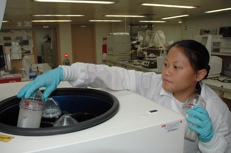 | Keywords: US Navy 060613-N-1577S-036 Navy Hospital Corpsman Elenita Sy of San Diego, test a patient^rsquo,s blood in the laboratory aboard the U.S. Military Sealift Command (MSC) Hospital Ship USNS Mercy (T-AH 19).jpg en Tawi Tawi Philippines June 13 2006 Navy Hospital Corpsman Elenita Sy of San Diego test a patient s blood in the laboratory aboard the U S Military Sealift Command MSC Hospital Ship USNS Mercy T-AH 19 during Mercy s visit to the city on a scheduled humanitarian visit Mercy is on a five-month deployment to South Asia Southeast Asia and the Pacific Islands The medical crew aboard Mercy will provide general and ophthalmology surgery basic medical evaluation and treatment preventive medicine treatment dental screenings and treatment optometry screenings eyewear distribution public health training and veterinary services as requested by the host nations Like all U S naval forces Mercy is able to rapidly respond to a range of situations on short notice Mercy is uniquely capable of supporting medical and humanitarian assistance needs and is configured with special medical equipment and a robust multi-specialized medical team that can provide a range of services ashore as well as aboard the ship The medical staff is augmented with an assistance crew many of whom are part of nongovernmental organizations that have significant medical capabilities U S Navy photo by Mass Communication Specialist 2nd Class Timothy F Sosa RELEASED 2006-06-13 060613-N-1577S-036 Navy http //www navy mil/view_image asp id 35757 U S Navy photo by Mass Communication Specialist 2nd Class Timothy F Sosa PD-USGov-Military-Navy Images from US Navy location Tawi-Tawi Philippines Aboard USNS Mercy T-AH-19 |