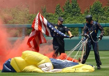 | Keywords: US Navy 060618-N-4729H-096 A member of the Navy Parachute Team Leapfrogs unhooks the American flag from the Team Officer in Charge, Lt. Geoff Reeves, after his jump in to Citizens Bank Park.jpg  en Philadelphia June 18 2006 - A member of the Navy Parachute Team Leapfrogs unhooks the American flag from the Team Officer in Charge Lt Geoff Reeves after his jump in to Citizens Bank Park during the Philadelphia Phillies' pre-game Father's Day show Several of Leapfrogs team members delivered game balls to the team one of which was used as the first pitch thrown by Supreme Court Justice Samuel Alito The Leapfrogs were in town performing on board Naval Air Station Joint Reserve Base Willow Grove Air Show over the weekend U S Navy photo by Chief Journalist Monica Hallman RELEASED 2006-06-18 060618-N-4729H-096 Navy http //www navy mil/view_image asp id 36029 U S Navy photo by Chief Journalist Monica Hallman PD-USGov-Military-Navy Images from US Navy location Philadelphia PA |