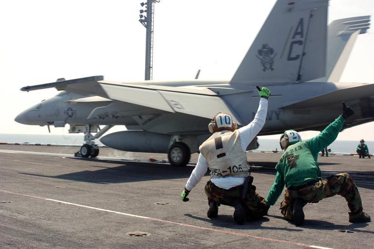 Keywords: US Navy 060823-N-5248R-012 Flight deck crew members give the all clear signal for the launch of an F-A-18E Super Hornet assigned to the Gunslingers of Strike Fighter Squadron One Zero Five (VFA-105).jpg en Atlantic Ocean Aug 23 2006 - Flight deck crew members give the all clear signal for the launch of an F/A-18E Super Hornet assigned to the Gunslingers of Strike Fighter Squadron One Zero Five VFA-105 on the flight deck aboard the Nimitz-class aircraft carrier USS Theodore Roosevelt CVN 71 Roosevelt is currently under way maintaining qualifications as part of the Fleet Response Plan U S Navy photo by Mass Communication Specialist Seaman Sheldon Rowley RELEASED 2006-08-23 060823-N-5248R-012 Navy http //www navy mil/view_image asp id 38336 U S Navy photo by Mass Communication Specialist Seaman Sheldon Rowley PD-USGov-Military-Navy USS Theodore Roosevelt CVN-71 flight deck Strike Fighter Squadron 105 United States Navy |