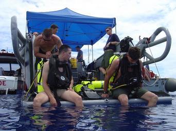 Keywords: US Navy 061010-N-7473W-029 Lt. j.g. Tyler Y. Smith and Navy Diver 3rd Class Zach D. Dimare, from USS Safeguard (ARS 50) inspect their diving gear and test communications prior to entering the water.jpg en Republic of Marshall Islands Oct 10 2006 - Lt j g Tyler Y Smith and Navy Diver 3rd Class Zach D Dimare from USS Safeguard ARS 50 inspect their diving gear and test communications prior to entering the water to survey two U S Douglas Devastator Torpedo Bombers that were lost in World War II Divers and other crew members from USS Safeguard ARS 50 assisted the Naval Historical Center NHC and The International Group for Historic Aircraft Recovery TIGHAR in a scientific survey of two submerged World War II aircraft in order to provide information to one-day salvage them U S Navy photo by Navy Diver 2nd Class Morgan B Wade RELEASED 2006-10-10 061010-N-7473W-029 Navy http //www navy mil/view_image asp id 40074 U S Navy photo by Navy Diver 2nd Class Morgan B Wade PD-USGov-Military-Navy Images from US Navy location Republic of Marshall Islands Men facing right and looking right Men wearing shorts Military people in 2006 October 2006 in Oceania People in contact with water People of the United States in 2006 Sitting men Sitting with legs wide open Smith surname Topless male sailors Topless male underwater divers 21st-century men of the United States Scuba equipment United States Navy Divers Aboard USNS Safeguard T-ARS-50 10 October |