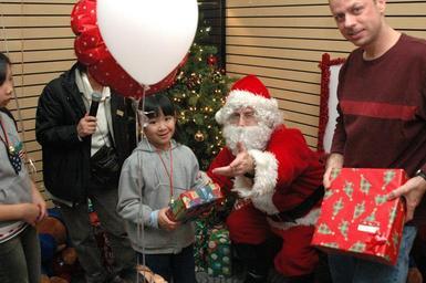 | Keywords: US Navy 061216-N-5067K-061 Air Traffic Controller 1st Class Sean L. Mulvaney holds a gift while Santa passes a present to a young Japanese girl during a Christmas party for two Sasebo-area orphanages.jpg en Sasebo Japan Dec 16 2006 - Air Traffic Controller 1st Class Sean L Mulvaney holds a gift while Santa passes a present to a young Japanese girl during a Christmas party for two Sasebo-area orphanages The amphibious assault ship USS Essex LHD 2 First Class Petty Officer Association sponsored the party at the base bowling area where more than 120 children enjoyed food bowling balloons and gifts from Santa Claus Essex is the Navy's only forward-deployed amphibious assault ship and is the flagship for the Essex Expeditionary Strike Group based in Sasebo Japan U S Navy photo by Mass Communication Specialist 1st Class Michael Kennedy RELEASED 2006-12-16 061216-N-5067K-061 Navy http //www navy mil/view_image asp id 41676 U S Navy photo by Mass Communication Specialist 1st Class Michael Kennedy PD-USGov-Military-Navy Air Traffic Controller United States Navy Sasebo Nagasaki Aboard USS Essex LHD-2 |