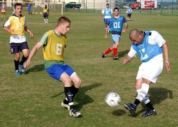 | Keywords: US Navy 061228-N-4049C-028 Sailors from commands around the globe show their soccer skills as they compete for a coveted spot on the All-Navy men^rsquo,s soccer team.jpg en Mayport Fla Dec 28 2006 - Sailors from commands around the globe show their soccer skills as they compete for a coveted spot on the All-Navy men s soccer team The 18-man team will play in the Armed Forces Soccer Championship January 17th through January 23rd The tournament features the best soccer players from all branches of the military and will determine which players will represent the United States at the International Military Sports Championship U S Navy photo by Mass Communication Specialist Seaman Patrick J Cook RELEASED 2006-12-28 061228-N-4049C-028 Navy http //www navy mil/view_image asp id 41949 U S Navy photo by Mass Communication Specialist Seaman Patrick J Cook PD-USGov-Military-Navy Images from US Navy location Duval County Florida Association football in the United States Navy |