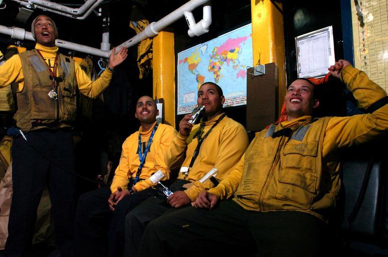 | Keywords: US Navy 070204-N-0555B-158 Just off the flight deck aboard Nimitz-class aircraft carrier USS Ronald Reagan (CVN 76), aviation boatswain's mates (Handling) use their time in between launch cycles to watch Super Bowl XLI.jpg en Pacific Ocean Feb 4 2007 - Just off the flight deck aboard Nimitz-class aircraft carrier USS Ronald Reagan CVN 76 aviation boatswain's mates Handling use their time in between launch cycles to watch Super Bowl XLI Eyes locked on the screen the yellow shirts keep watching the game as long as possible even as they begin to put on their gear to go back out on the flight deck The Ronald Reagan Carrier Strike Group is currently underway in support of operations in the western Pacific U S Navy photo by Mass Communication Specialist 2nd Class Christopher D Blachly RELEASED 2007-02-04 070204-N-0555B-158 Navy http //www navy mil/view_image asp id 42746 U S Navy photo by Mass Communication Specialist 2nd Class Christopher D Blachly PD-USGov-Military-Navy Aviation Boatswain's Mates Handlers Aboard USS Ronald Reagan CVN-76 |