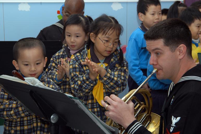 Keywords: US Navy 070205-N-9604C-193 Musician 2nd Class Bob Booker assigned to 7th Fleet Navy Band, plays the horn for a group of nursery school children at the Society for Protection of Children, Hok Sam House.jpg en Hong Kong Feb 5 2007 - Musician 2nd Class Bob Booker assigned to 7th Fleet Navy Band plays the horn for a group of nursery school children at the Society for Protection of Children Hok Sam House The band gave an hour-long performance at the school for students and faculty followed by individual group training with the students Command ship USS Blue Ridge LCC 19 and embarked 7th Fleet staff arrived on the island Feb 3 as part of a regularly scheduled port visit U S Navy photo by Mass Communication Specialist Seaman Shannon K Cassidy RELEASED 2007-02-05 070205-N-9604C-193 Navy http //www navy mil/view_image asp id 42798 U S Navy photo by Mass Communication Specialist Seaman Shannon K Cassidy PD-USGov-Military-Navy Images from US Navy location Hong Kong Aboard USS Blue Ridge LCC-19 Military music of the United States |