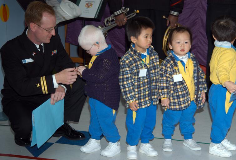 Keywords: US Navy 070205-N-9604C-308 Lt. Walt Cline, bandmaster of the 7th Fleet Navy Band, talks to a group of students at the Society for Protection of Children, Hok Sam House nursery school.jpg en Hong Kong Feb 5 2007 - Lt Walt Cline bandmaster of the 7th Fleet Navy Band talks to a group of students at the Society for Protection of Children Hok Sam House nursery school The band gave an hour-long performance at the school for students and faculty followed by individual group training with the students Command ship USS Blue Ridge LCC 19 and embarked 7th Fleet staff arrived on the island Feb 3 as part of a regularly scheduled port visit U S Navy photo by Mass Communication Specialist Seaman Shannon K Cassidy RELEASED 2007-02-05 070205-N-9604C-308 Navy http //www navy mil/view_image asp id 42799 U S Navy photo by Mass Communication Specialist Seaman Shannon K Cassidy PD-USGov-Military-Navy Images from US Navy location Hong Kong Aboard USS Blue Ridge LCC-19 |