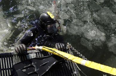 Keywords: US Navy 070207-N-8467N-002 Navy Diver 3rd Class John Seagraves gets ready to start his dive off the back of the dive boat. Seagraves is part of Naval Submarine Support Facility dive locker.jpg en Groton Conn Feb 7 2007 - Navy Diver 3rd Class John Seagraves gets ready to start his dive off the back of the dive boat Seagraves is part of Naval Submarine Support Facility dive locker and is attached to the Los Angeles-class fast attack submarine USS San Juan SSN 751 Colder then normal temperatures caused ice to form on the Thames River at Submarine Base New London in Groton Conn U S Navy photo by John Narewski RELEASED 2007-02-07 070207-N-8467N-002 Navy http //www navy mil/view_image asp id 43133 U S Navy photo by John Narewski PD-USGov-Military-Navy Naval Submarine Base New London USS San Juan SSN-751 United States Navy Divers Thames River Connecticut |