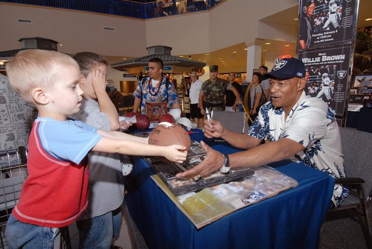 Keywords: US Navy 070208-N-4965F-001 A young patron hands a football to Willie Brown, Hall of Fame cornerback for the Oakland Raiders, during an autograph signing session at the Pearl Harbor Navy Exchange.jpg en Pearl Harbor Hawaii Feb 8 2007 - A young patron hands a football to Willie Brown Hall of Fame cornerback for the Oakland Raiders during an autograph signing session at the Pearl Harbor Navy Exchange Brown is currently in Honolulu Hawaii for the 28th consecutive Pro Bowl at Aloha Stadium U S Navy photo by Mass Communication Specialist 1st Class James E Foehl RELEASED 2007-02-08 070208-N-4965F-001 Navy http //www navy mil/view_image asp id 42967 U S Navy photo by Mass Communication Specialist 1st Class James E Foehl PD-USGov-Military-Navy Mall at Pearl Harbor |