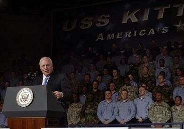 | Keywords: US Navy 070221-N-8492C-130 Vice President Dick Cheney speaks to a group of nearly 4,000 Japan-based military personnel, family members and Department of Defense civilian employees during a visit to USS Kitty Hawk (CV 63).jpg en Yokosuka Japan Feb 21 2007 Vice President Dick Cheney speaks to a group of nearly 4 000 Japan-based military personnel family members and Department of Defense civilian employees during a visit to USS Kitty Hawk CV 63 During his speech Cheney thanked the troops for their support of the global war on terrorism Cheney is in Japan during a week-long tour to the Pacific to strengthen alliances with Japan and Australia U S Navy photo by Chief Mass Communication Specialist Todd P Cichonowicz RELEASED 2007-02-21 070221-N-8492C-130 Navy http //www navy mil/view_image asp id 43349 U S Navy photo by Chief Mass Communication Specialist Todd P Cichonowicz PD-USGov-Military-Navy United States Fleet Activities Yokosuka Aboard USS Kitty Hawk CV-63 Dick Cheney in 2007 |