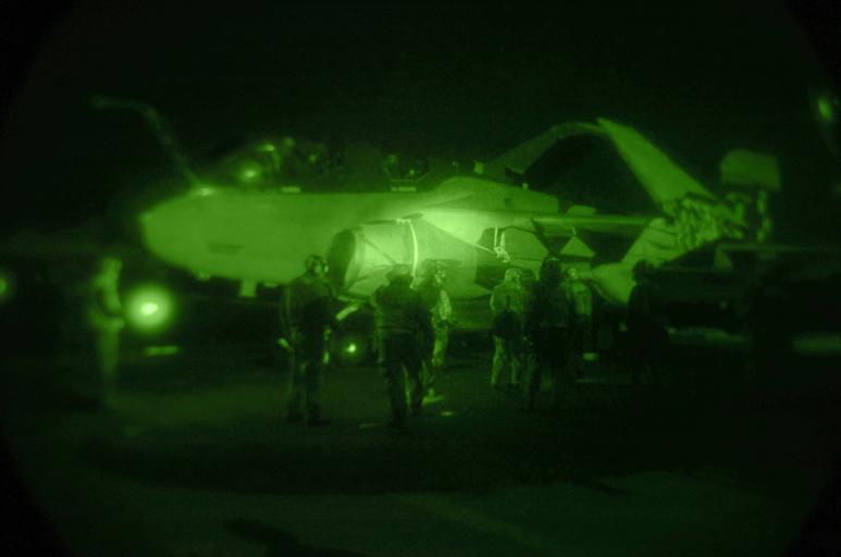 Keywords: US Navy 070301-N-5484G-145 Sailors secure an EA-6B Prowler to the flight deck of nuclear-powered aircraft carrier USS Nimitz (CVN 68) after completing night time flight operations.jpg en PACIFIC OCEAN March 1 2007 - Sailors secure an EA-6B Prowler to the flight deck of nuclear-powered aircraft carrier USS Nimitz CVN 68 after completing night time flight operations Nimitz is currently underway conducting Joint Task Force Exercises off the coast of Southern California U S Navy photo by Mass Communication Specialist Seaman Joseph Pol Sebastian Gocong RELEASED 2007-03-01 070301-N-5484G-145 Navy http //www navy mil/view_image asp id 43636 U S Navy photo by Mass Communication Specialist Seaman Joseph Pol Sebastian Gocong PD-USGov-Military-Navy Grumman EA-6 Prowler on flight decks Aboard USS Nimitz CVN-68 Military activities at night |