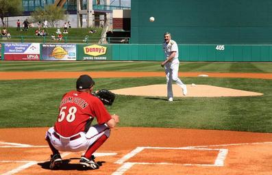 Keywords: US Navy 070315-N-3271W-002 Commander, U.S. Second Fleet, Vice Adm. Evan M. Chanik throws the first pitch at a pre-season baseball game between the Arizona Diamondbacks and Texas Rangers.jpg en TUCSON Ariz March 15 2007 Commander U S Second Fleet Vice Adm Evan M Chanik throws the first pitch at a pre-season baseball game between the Arizona Diamondbacks and Texas Rangers Chanik s appearance coincided with events concurrent with Tucson Navy Week The week is one of 26 Navy Weeks planned across America in 2007 Navy Week is designed to show Americans the investment they have made in their Navy and increase awareness in cities that do not have a significant everyday Navy presence U S Navy photo by Chief Mass Communication Specialist Gary Ward RELEASED 2007-03-15 070315-N-3271W-002 Navy http //www navy mil/view_image asp id 44074 U S Navy photo by Chief Mass Communication Specialist Gary Ward PD-USGov-Military-Navy Tucson Arizona Ceremonial first pitch Major League Baseball 2007 Arizona Diamondbacks season Evan M Chanik |