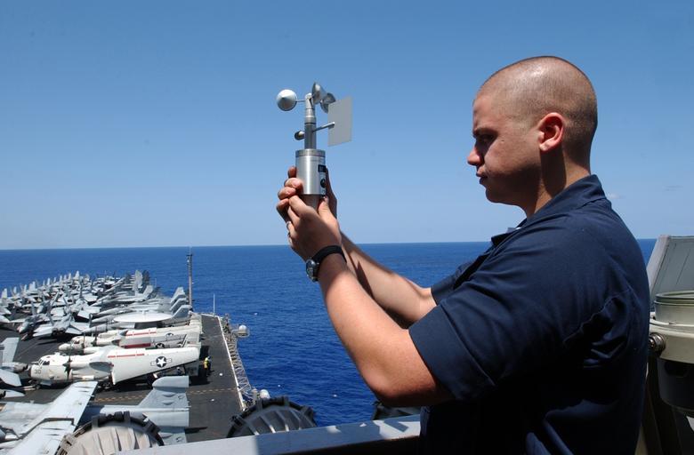 Keywords: US Navy 070406-N-4009P-149 Aerographer^rsquo,s Mate 3rd Class Heath Collins, from Kirbyville, Texas, uses an anemometer to take a reading of the current local wind speed and direction on board Nimitz-class aircraft carrier USS.jpg en SOUTH CHINA SEA April 6 2007 - Aerographer s Mate 3rd Class Heath Collins from Kirbyville Texas uses an anemometer to take a reading of the current local wind speed and direction on board Nimitz-class aircraft carrier USS Ronald Reagan CVN 76 Ronald Reagan Carrier Strike Group is underway in support of operations in South China Sea U S Navy photo by Mass Communication Specialist Seaman Joe Painter RELEASED 2007-04-06 070406-N-4009P-149 Navy http //www navy mil/view_image asp id 44883 U S Navy photo by Mass Communication Specialist Seaman Joe Painter PD-USGov-Military-Navy Aboard USS Ronald Reagan CVN-76 Aerographer's Mate Anemometers |