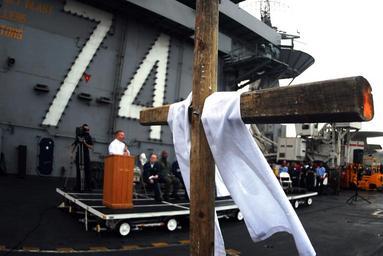 | Keywords: US Navy 070408-N-9928E-046 Cmdr. William Kennedy, the ship's chaplain, presides over the Easter Sunrise Service on the flight deck of Nimitz-class aircraft carrier USS John C. Stennis (CVN 74).jpg en ARABIAN SEA April 8 2007 - Cmdr William Kennedy the ship's chaplain presides over the Easter Sunrise Service on the flight deck of Nimitz-class aircraft carrier USS John C Stennis CVN 74 John C Stennis Carrier Strike Group is on a scheduled deployment in support of Maritime Security Operations MSO MSO help set the conditions for security and stability as well as aid counter-terrorism and security efforts to the regional nations U S Navy photo by Mass Communication Specialist Seaman Josue Leopoldo Escobosa RELEASED 2007-04-08 070408-N-9928E-046 Navy http //www navy mil/view_image asp id 44930 U S Navy photo by Mass Communication Specialist Seaman Josue Leopoldo Escobosa PD-USGov-Military-Navy Easter sunrise services Aboard USS John C Stennis CVN-74 United States Navy chaplains |
