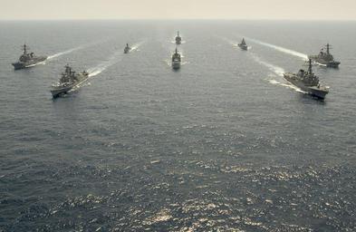 | Keywords: US Navy 070409-N-9851B-006 U.S. and Indian Navy ships conducts a formation during Exercise Malabar 07-01.jpg en PHILIPPINE SEA April 9 2007 U S and Indian Navy ships conducts a formation during Exercise Malabar 07-01 Malabar is a bilateral U S -Indian Navy training exercise off the coast of Okinawa Japan U S Navy photo by Mass Communication Specialist 1st Class John L Beeman RELEASED 2007-04-09 070409-N-9851B-006 Navy http //www navy mil/view_image asp id 44968 U S Navy photo by Mass Communication Specialist 1st Class John L Beeman PD-USGov-Military-Navy Malabar 2007 Malabar 2007-01 Ship formations |