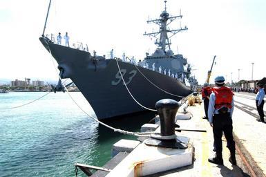 Keywords: US Navy 070416-N-6674H-027 Sailors aboard USS Chung-Hoon (DDG 93) man the rails as the ship departs Pearl Harbor for deployment.jpg en PEARL HARBOR Hawaii April 16 2007 - Sailors aboard USS Chung-Hoon DDG 93 man the rails as the ship departs Pearl Harbor for deployment The ship deployed with Bonhomme Richard Expeditionary Strike Group to conduct operations in the Pacific and Central Command areas of responsibility U S Navy photo by Mass Communication Specialist Paul D Honnick RELEASED 2007-04-16 070416-N-6674H-027 Navy http //www navy mil/view_image asp id 45207 U S Navy photo by Mass Communication Specialist Paul D Honnick PD-USGov-Military-Navy 2007 in Pearl Harbor Images from US Navy location Pearl Harbor Hawaii USS Chung-Hoon DDG-93 Manning the rail in the United States Navy Mooring bollards USS Chung-Hoon DDG-93 at Pearl Harbor |