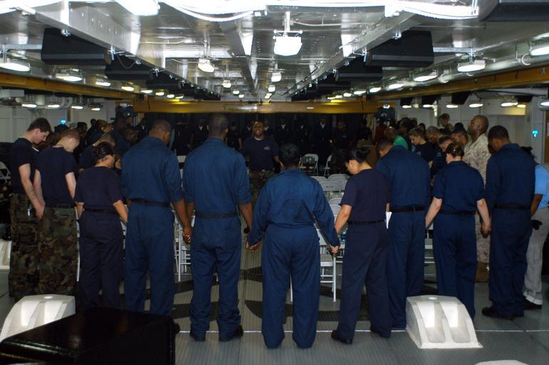 | Keywords: US Navy 070505-N-1525H-090 Sailors gather for prayer during a revival put on by the Gospel Church aboard nuclear-powered aircraft carrier USS Nimitz (CVN 68).jpg en INDIAN OCEAN May 5 2005 - Sailors gather for prayer during a revival put on by the Gospel Church aboard nuclear-powered aircraft carrier USS Nimitz CVN 68 Nimitz Carrier Strike Group CSG is deployed in support of Maritime Security Operations MSO U S Navy photo by Mass Communication Specialist Seaman Matthew Haws RELEASED 2005-05-05 070505-N-1525H-090 Navy http //www navy mil/view_image asp id 45887 U S Navy photo by Mass Communication Specialist Seaman Matthew Haws PD-USGov-Military-Navy Aboard USS Nimitz CVN-68 |