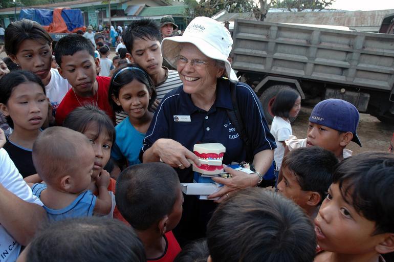 | Keywords: US Navy 070602-N-2296G-146 U.S. Navy Cmdr. Joan Cooper attached to reserve Operational Health Support Unit Dallas, Texas, Det. H gets a rock star greeting from the children of Isabela City who want to see her big toothbrush as.jpg en ISABELA Philippines June 2 2007 - U S Navy Cmdr Joan Cooper attached to reserve Operational Health Support Unit Dallas Texas Det H gets a rock star greeting from the children of Isabela City who want to see her big toothbrush as she demonstrates good oral hygiene Cooper is part of a joint Philippines-United States Medical Civic Action Project MEDCAP Her job is to educate children on proper health care with her Filipino counterparts during the Cooperation Afloat Readiness and Training CARAT exercise series CARAT is an annual series of bilateral maritime training exercises between the U S and six Southeast Asia nations designed to build relationships and enhance the operational readiness of the participating forces U S Navy photo by Mass Communication Specialist 1st Class Dave Gordon RELEASED 2007-06-02 070602-N-2296G-146 Navy http //www navy mil/view_image asp id 46919 U S Navy photo by Mass Communication Specialist 1st Class Dave Gordon PD-USGov-Military-Navy Images from US Navy location ISABELA Philippines |