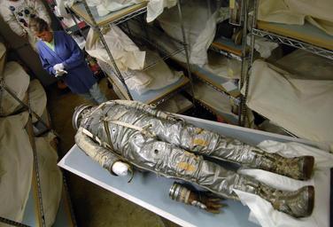 | Keywords: US Navy 070608-N-5345W-096 Amanda Young, the National Air ^ Space Museum's specialist in early manned spaceflight and astronautical equipment, dons her gloves while preparing to inspect former naval astronaut Rear Adm. Alan B.jpg en SUITLAND Md June 8 2007 - Amanda Young the National Air Space Museum's specialist in early manned spaceflight and astronautical equipment dons her gloves while preparing to inspect former naval astronaut Rear Adm Alan B Shepard's project Mercury spacesuit worn May 5 1961 when Shepard piloted the Freedom 7 orbiter and became America's first man in space Shepard's suit along with many other historically significant spacesuits is currently stored in temperature and humidity controlled environments at the Paul E Garber Preservation Restoration and Storage Facility U S Navy photo by Mass Communication Specialist 2nd Class Kristopher Wilson RELEASED 2007-06-08 070608-N-5345W-096 Navy http //www navy mil/view_image asp id 47065 U S Navy photo by Mass Communication Specialist 2nd Class Kristopher Wilson PD-USGov-Military-Navy Images from US Navy location SUITLAND Md Paul E Garber Preservation Restoration and Storage Facility Alan Shepard Mercury Spacesuit |
