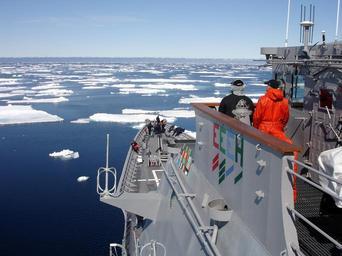 | Keywords: US Navy 070612-N-2889B-001 Ship's Serviceman Seaman Recruit Jamal Powell, left, and Seaman Recruit Stephen Harmon stand forward lookout watch aboard guided-missile cruiser USS Normandy (CG 60) as the ship navigates an ice field.jpg en ARCTIC CIRCLE June 12 2007 - Ship's Serviceman Seaman Recruit Jamal Powell left and Seaman Recruit Stephen Harmon stand forward lookout watch aboard guided-missile cruiser USS Normandy CG 60 as the ship navigates an ice field north of Iceland U S Navy photo by L t j g Ryan Birkelbach RELEASED 2007-06-12 070612-N-2889B-001 Navy http //www navy mil/view_image asp id 47088 U S Navy photo by L t j g Ryan Birkelbach PD-USGov-Military-Navy Images from US Navy location ARTIC CIRCLE Aboard USS Normandy CG-60 Ships in ice |