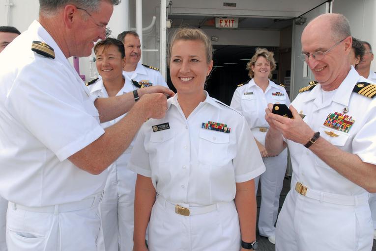| Keywords: US Navy 070703-N-4238B-045 Capt. Bruce Boynton, Medical Treatment Facility commanding officer, promote PHS Lt. Cmdr. Jennifer Tredway, a surgical nurse attached to Comfort.jpg  en CARIBBEAN SEA July 3 2007 U S Public Health Service PHS Capt Craig Shepherd an environmental health officer aboard the Military Sealift Command hospital ship USNS Comfort T-AH 20 and Capt Bruce Boynton Medical Treatment Facility commanding officer promote PHS Lt Cmdr Jennifer Tredway a surgical nurse attached to Comfort The ceremony was the first of its kind at sea for the PHS Comfort is on a four-month humanitarian deployment to Latin America and the Caribbean to provide medical treatment to approximately 85 000 patients in a dozen countries While deployed Comfort is under operational control of U S Naval Forces Southern Command and tactical control of Destroyer Squadron DESRON 24 U S Navy photo by Mass Communication Specialist 3rd Class Kelly E Barnes RELEASED 2007-07-03 070703-N-4238B-045 Navy http //www navy mil/view_image asp id 47916 U S Navy photo PD-USGov-Military-Navy Aboard USNS Comfort T-AH-20 United States Public Health Service Women in the United States Navy |