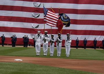 Keywords: US Navy 070704-N-7869M-063 The color guard from multi-purpose amphibious assault ship USS Wasp (LHD 1) presents the colors during the Tampa Bay Devil Rays and Boston Red Sox baseball game at Fenway Park.jpg en BOSTON July 4 2007 The color guard from multi-purpose amphibious assault ship USS Wasp LHD 1 presents the colors during the Tampa Bay Devil Rays and Boston Red Sox baseball game at Fenway Park The color guard spent the day performing at different events throughout the Boston to celebrate Independence Day Wasp was in Boston for the annual Harborfest held during the week of Fourth of July U S Navy photo by Mass Communication Specialist 3rd Class Brian May RELEASED 2007-07-04 070704-N-7869M-063 Navy http //www navy mil/view_image asp id 48018 U S Navy photo by Mass Communication Specialist 3rd Class Brian May PD-USGov-Military-Navy Images from US Navy location BOSTON Aboard USS Wasp LHD-1
