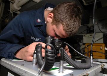 | Keywords: US Navy 070716-N-1994L-041 Aviation Electronics Technician 1st Class Russell Vaughn tests the light receiving ability while performing maintenance on a pair of night-vision goggles aboard amphibious assault ship USS Bonhomme Ri.jpg en PERSIAN GULF July 16 2007 - Aviation Electronics Technician 1st Class Russell Vaughn tests the light receiving ability while performing maintenance on a pair of night-vision goggles aboard amphibious assault ship USS Bonhomme Richard LHD 6 Sailors perform maintenance on the goggles every 180 days to ensure they are kept in their optimum working state Bonhomme Richard Expeditionary Strike Group is operating in the 5th Fleet area of operations conducting maritime operations and supporting the global war on terrorism U S Navy photo by Mass Communication Specialist 3rd Class Robert C Long RELEASED 2007-07-16 070716-N-1994L-041 Navy http //www navy mil/view_image asp id 48325 U S Navy photo by Mass Communication Specialist 3rd Class Robert C Long PD-USGov-Military-Navy Aviation Electronics Technician Aboard USS Bonhomme Richard LHD-6 Night vision equipment |