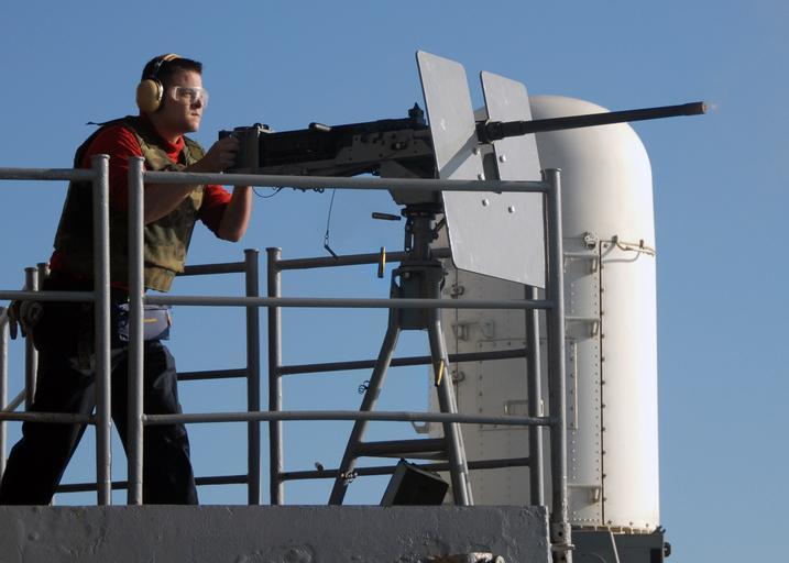 | Keywords: US Navy 070719-N-7981E-237 Aviation Ordnanceman Airman Jason Rowe fires a .50-caliber machine gun from the fantail of Nimitz-class aircraft carrier USS Abraham Lincoln (CVN 72) during a graded, live-fire killer barrel exercise.jpg en PACIFIC OCEAN July 19 2007 - Aviation Ordnanceman Airman Jason Rowe fires a 50-caliber machine gun from the fantail of Nimitz-class aircraft carrier USS Abraham Lincoln CVN 72 during a graded live-fire killer barrel exercise Killer barrel tests the ability of Lincoln's machine gun crews to engage and destroy small surface threats by firing on floating target barrels equipped with smoke markers Lincoln is underway conducting carrier qualifications off the coast of Southern California U S Navy photo by Mass Communication Specialist 3rd Class James R Evans RELEASED 2007-07-19 070719-N-7981E-237 Navy http //www navy mil/view_image asp id 48551 U S Navy photo by Mass Communication Specialist 3rd Class James R Evans PD-USGov-Military-Navy Browning M2 of the US Navy Aviation Ordnanceman Aboard USS Abraham Lincoln CVN-72 Shooting |