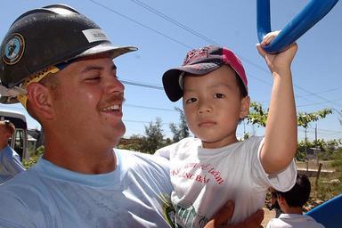 Keywords: US Navy 070722-N-9421C-143 Equipment Operator 2nd Class Robert Bustos plays with a Vietnamese child on a newly built playground set at Hoi Mai Orphanage during an engineering civic action program in support of Pacific Partnersh.jpg en DA NANG Vietnam July 22 2007 - Equipment Operator 2nd Class Robert Bustos plays with a Vietnamese child on a newly built playground set at Hoi Mai Orphanage during an engineering civic action program in support of Pacific Partnership 2007 Seabees with Naval Mobile Construction Battalion NMCB 7 and Amphibious Construction Battalion ACB 1 are working at the orphanage in support of Pacific Partnership The Pacific Partnership deployment to Vietnam continues to improve upon bilateral relations between the United States and Vietnam demonstrating our continued commitment to work together to address mutual issues and concerns U S Navy photo by Mass Communication Specialist 2nd Class Kerryl Cacho RELEASED 2007-07-22 070722-N-9421C-143 Navy http //www navy mil/view_image asp id 48584 U S Navy photo by Mass Communication Specialist 2nd Class Kerryl Cacho PD-USGov-Military-Navy Children of Da Nang Hoa Mai Orphanage Relations of the United States and Vietnam Equipment Operator United States Navy |