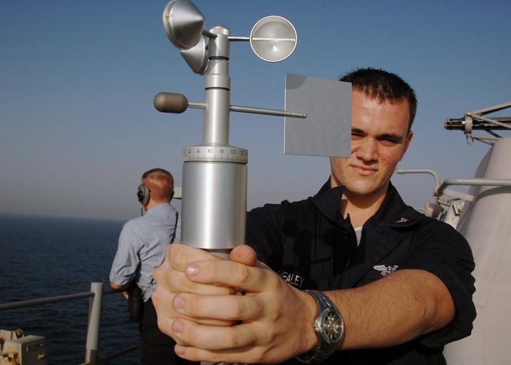 Keywords: US Navy 070803-N-9640S-026 Aerographer^rsquo,s Mate 3rd Class Shane Healey, a native of Bauxite, Ark., uses a PM-Q3 handheld anemometer aboard USS Bonhomme Richard (LHD 6) (BHR).jpg en PERSIAN GULF Aug 3 2007 - Aerographer s Mate 3rd Class Shane Healey a native of Bauxite Ark uses a PM-Q3 handheld anemometer aboard USS Bonhomme Richard LHD 6 BHR PM-Q3s are used to measure relative wind direction and speed The BHR Expeditionary Strike Group ESG is operating in the U S 5th Fleet Area of Operations and will be conducting Maritime Operations MO U S and coalition forces conduct MO to help set the conditions for security and stability in the maritime environment as well as complement the counter-terrorism and security efforts of regional nations These operations seek to disrupt violent extremists use of the maritime environment as a venue for attack or to transport personnel weapons or other materials U S Navy photo by Mass Communication Specialist Seaman Tiffany Sivels RELEASED 2007-08-03 070803-N-9640S-026 Navy http //www navy mil/view_image asp id 49049 U S Navy photo by Mass Communication Specialist Seaman Tiffany Sivels PD-USGov-Military-Navy Aboard USS Bonhomme Richard LHD-6 Aerographer's Mate Anemometers |