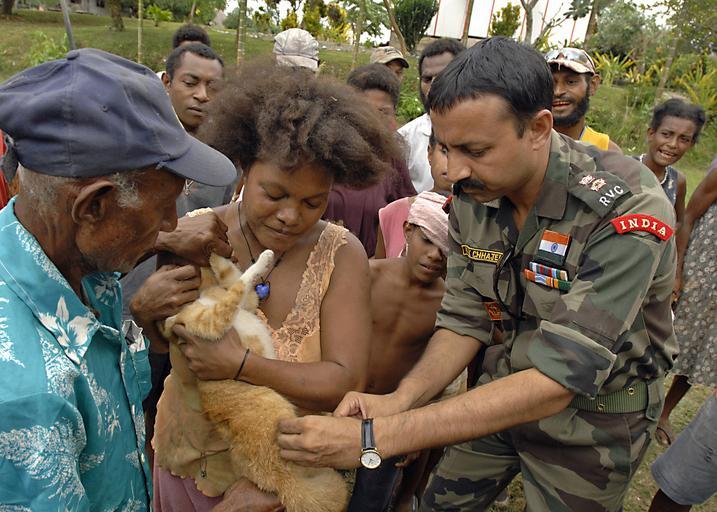 | Keywords: US Navy 070810-N-4954I-120 Lt. Col. Raveesh Chhajed, a veterinarian from the Indian Army, gives a family cat a rabies vaccination while onlookers gather to see the procedure.jpg en MADANG Papua New Guinea Aug 10 2007 Lt Col Raveesh Chhajed a veterinarian from the Indian Army gives a family cat a rabies vaccination while onlookers gather to see the procedure The veterinary civil-assistance program VETCAP was in support of Pacific Partnership a four-month humanitarian assistance mission Along with regional partners and non-governmental organizations the Pacific Partnership team is providing the local community with a wide range of assistance U S Navy photo by Mass Communication Specialist 3rd Class Bryan M Ilyankoff RELEASED 2007-08-10 070810-N-4954I-120 Navy http //www navy mil/view_image asp id 49404 U S Navy photo by Mass Communication Specialist 3rd Class Bryan M Ilyankoff PD-USGov-Military-Navy Madang Rabies Veterinary vaccinations |