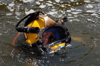 | Keywords: US Navy 070811-N-3093M-009 Chief Navy Diver Scott Maynard attached to Mobile Diving and Salvage Unit (MDSU) 2 from Naval Amphibious Base Little Creek, Va., prepares to leave the surface on a salvage dive in the Mississippi Rive.jpg  en MINNEAPOLIS Minn Aug 11 2007 - Chief Navy Diver Scott Maynard attached to Mobile Diving and Salvage Unit MDSU 2 from Naval Amphibious Base Little Creek Va prepares to leave the surface on a salvage dive in the Mississippi River MDSU-2 is assisting other federal state and local authorities managing disaster and recovery efforts at the site of the I-35 bridge collapse U S Navy photo by Senior Chief Mass Communication Specialist Andrew McKaskle RELEASED 2007-08-11 070811-N-3093M-009 Navy http //www navy mil/view_image asp id 49423 U S Navy photo by Senior Chief Mass Communication Specialist Andrew McKaskle PD-USGov-Military-Navy I-35W Mississippi River Bridge collapse United States Navy Mobile Diving and Salvage Unit Two Lightweight demand diving helmets United States Navy Divers Diving lights Underwater video equipment |