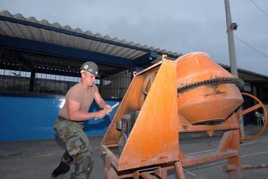 Keywords: US Navy 070819-N-8704K-011 Builder 2nd Class Charlie Page, a Seabee with Construction Battalion Maintenance Unit (CBMU) 20, starts a concrete mixer to lay wheelchair ramps at the Luis Teodoro Cantos School.jpg en MANTA Ecuador Aug 19 2007 - Builder 2nd Class Charlie Page a Seabee with Construction Battalion Maintenance Unit CBMU 20 starts a concrete mixer to lay wheelchair ramps at the Luis Teodoro Cantos School The Seabees of CBMU 202 attached to hospital ship USNS Comfort T-AH 20 are taking part in four community relations projects while in Ecuador Comfort is on a four-month humanitarian deployment to Latin America and the Caribbean providing medical treatment to patients in a dozen countries U S Navy photo by Mass Communication Specialist 2nd Class Joshua Karsten RELEASED 2007-08-19 070819-N-8704K-011 Navy http //www navy mil/view_image asp id 49730 U S Navy photo by Mass Communication Specialist 2nd Class Joshua Karsten PD-USGov-Military-Navy USNS Comfort T-AH-20 in Manta Builder United States Navy Cement mixers |