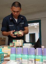 | Keywords: US Navy 070821-N-1467K-020 Hospital Corpsman 2nd Class Ronald Castillo sorts through medicine during a medical civic action program at the Tafunsak government building in support of Pacific Partnership.jpg  en TAFUNSAK Kosrae Aug 21 2007 - Hospital Corpsman 2nd Class Ronald Castillo sorts through medicine during a medical civic action program at the Tafunsak government building in support of Pacific Partnership The Pacific Partnership mission is a four-month humanitarian assistance to areas in Southeastern Asia and Oceania U S Navy photo by Mass Communication Specialist 2nd Class Nathaniel J Karl RELEASED 2007-08-21 070821-N-1467K-020 Navy http //www navy mil/view_image asp id 50146 U S Navy photo by Mass Communication Specialist 2nd Class Nathaniel J Karl PD-USGov-Military-Navy Images from US Navy location TAFUNSAK Kosrae |
