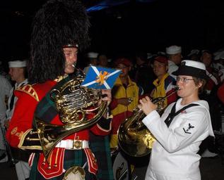 | Keywords: US Navy 070907-N-5174T-005 Musician 3rd Class Helena Giammarco, a Pacific Fleet band member, plays the French horn backstage with a friend from the Royal Regiment of Scotland following the second night of performances at the Ku.jpg en KUALA LUMPUR Malaysia Sept 7 2007 - Musician 3rd Class Helena Giammarco a Pacific Fleet band member plays the French horn backstage with a friend from the Royal Regiment of Scotland following the second night of performances at the Kuala Lumpur International Tattoo 2007 The Tattoo scheduled for Sept 6-8 celebrates the 50th anniversary of Malaysia s independence and features international military bands from the United States Jordan Brunei France India the Republic of the Philippines the Republic of Singapore the Kingdom of Thailand Korea the Islamic Republic of Pakistan the United Kingdom and a Maori cultural group from New Zealand U S Navy photo by Mass Communication Specialist 1st Class Shane Tuck RELEASED 2007-09-07 070907-N-5174T-005 Navy http //www navy mil/view_image asp id 50663 U S Navy photo by Mass Communication Specialist 1st Class Shane Tuck PD-USGov-Military-Navy Images from US Navy location Kuala Lumpur Malaysia Military music of the United States Royal Regiment of Scotland Sailor suits 2007 photographs Military people in 2007 People with ribbon bars Sailor collars |