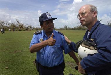 Keywords: US Navy 070907-N-1810F-029 USS Wasp (LHD 1) Expeditionary Strike Group Commodore Randy Snyder gets the thumbs up from a Nicaraguan police officer during Hurricane Felix disaster relief operations.jpg en PUERTO CABEZAS Nicaragua Sept 7 2007 USS Wasp LHD 1 Expeditionary Strike Group Commodore Randy Snyder gets the thumbs up from a Nicaraguan police officer during Hurricane Felix disaster relief operations U S Southern Command diverted Navy personnel to Nicaragua from an international maritime exercise in Panama on September 5 U S Navy photo by Mass Communication Specialist 2nd Class Todd Frantom RELEASED 2007-09-07 070907-N-1810F-029 Navy http //www navy mil/view_image asp id 50633 U S Navy photo by Mass Communication Specialist 2nd Class Todd Frantom PD-USGov-Military-Navy Images from US Navy location PUERTO CABEZAS Nicaragua Aboard USS Wasp LHD-1 Impact of Hurricane Felix in Nicaragua Pictures by Mass Communication Specialist Todd Frantom Military people with thumbs up Police in Nicaragua |