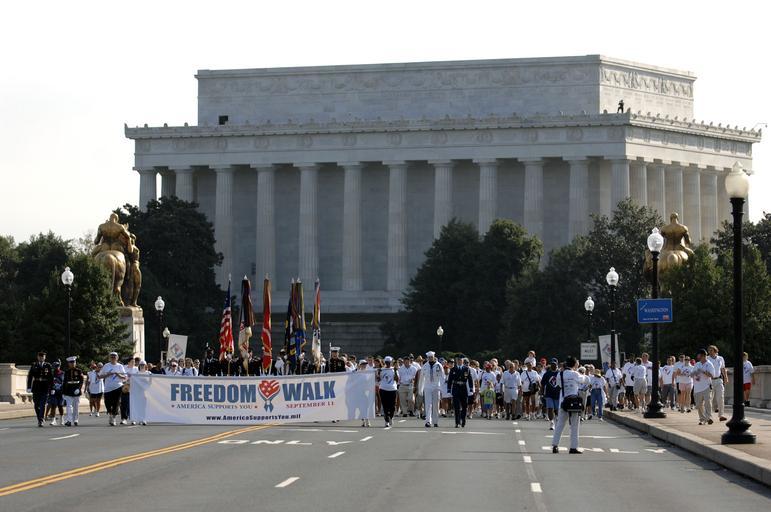 | Keywords: US Navy 070909-N-3642E-139 The America Supports You banner leads National Freedom Walk participants onto the Memorial Bridge toward Arlington, Va.jpg en WASHINGTON Sept 9 2007 - The America Supports You banner leads National Freedom Walk participants onto the Memorial Bridge toward Arlington Va The third annual walk commemorated the victims of the Sept 11th terrorist attack and honored military veterans past and present U S Navy photo by Chief Mass Communication Specialist Shawn P Eklund RELEASED 2007-09-09 070909-N-3642E-139 Navy http //www navy mil/view_image asp id 50720 U S Navy photo by Chief Mass Communication Specialist Shawn P Eklund PD-USGov-Military-Navy Arlington Memorial Bridge America Supports You Sixth anniversary of the September 11 2001 attacks |
