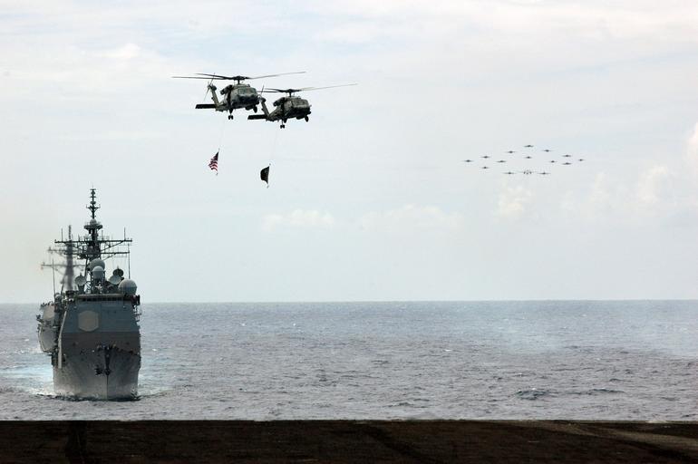 | Keywords: US Navy 070926-N-7128A-054 Two SH-60F Seahawks, assigned to the Indians of Helicopter Anti-submarine Squadron (HS) 6, fly over Carrier Strike Group (CSG) 11 ships.jpg en PACIFIC OCEAN Sept 26 2007 - Two SH-60F Seahawks assigned to the Indians of Helicopter Anti-submarine Squadron HS 6 fly over Carrier Strike Group CSG 11 ships as a formation of aircraft assigned to Carrier Air Wing CVW 11 approach the nuclear-powered aircraft carrier USS Nimitz CVN 68 during a Tiger Cruise air power demonstration Nimitz Carrier Strike Group and embarked CVW-11 are returning to their homeport of San Diego after a six-month deployment U S Navy photo by Mass Communication Specialist 2nd Class Kristen Allen RELEASED 2007-09-26 070926-N-7128A-054 Navy http //www navy mil/view_image asp id 51346 U S Navy photo by Mass Communication Specialist 2nd Class Kristen Allen PD-USGov-Military-Navy Aboard USS Nimitz CVN-68 |