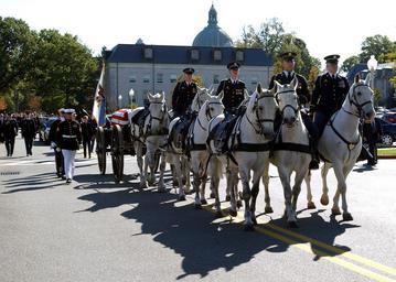 | Keywords: US Navy 071031-N-5215E-014 The Caisson platoon of the U.S. Army's 3rd Infantry Division, also known as the Old Guard, leads the funeral procession for former Chairman of the Joint Chiefs of Staff, Adm. William J. Crowe, en rout.jpg en ANNAPOLIS Md Oct 31 2007 - The Caisson platoon of the U S Army's 3rd Infantry Division also known as the Old Guard leads the funeral procession for former Chairman of the Joint Chiefs of Staff Adm William J Crowe en route to the U S Naval Academy Cemetery Crowe who died Oct 18 at the age of 82 was buried alongside his friend and classmate Vice Adm James B Stockdale Chairman of the Joint Chiefs of Staff Adm Michael G Mullen and former President William Clinton spoke at Crowe's service in the Naval Academy Chapel U S Navy photo by Mass Communication Specialist Seaman Matthew A Ebarb RELEASED 2007-10-31 071031-N-5215E-014 Navy http //www navy mil/view_image asp id 52346 U S Navy photo by Mass Communication Specialist Seaman Matthew A Ebarb PD-USGov-Military-Navy United States Naval Academy William J Crowe Jr Funeral processions in the United States |
