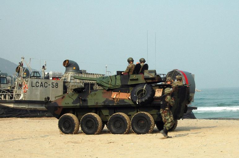 | Keywords: US Navy 071114-N-9177B-001 U.S. Marines assigned to the 31st Marine Expeditionary Unit and Republic of Korea Marines from the 2nd Battalion, 7th Marine Regiment, 1st Marine Division, prepare to move to the next objective during.jpg en POHANG Republic of Korea Nov 14 2007 U S Marines assigned to the 31st Marine Expeditionary Unit and Republic of Korea Marines from the 2nd Battalion 7th Marine Regiment 1st Marine Division prepare to move to the next objective during the Korean Integrated Training Plan exercise The U S light armored vehicle was transported to the beach by one of the three landing craft air cushions that shuttled Marines and equipment from ship to shore from the amphibious assault ship USS Essex LHD 2 U S Navy photo Released 2007-11-14 071114-N-9177B-001 Navy http //www navy mil/view_image asp id 52875 U S Navy photo PD-USGov-Military-Navy Pohang LCAC-58 ship 1993 LAV-25 2nd_Battalion_7th_Marines |
