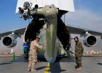 Keywords: US Navy 071205-N-7415V-036 Chief Aviation Mechanicsmate Alex Lymber and Afghan National Army Air Corps crew chief, Sgt. Zulmi look at the tail of a refurbished MI-17 helicopter that just arrived from the Czech Republic.jpg en Kabul Afghanistan December 5 2007 Chief Aviation Mechanicsmate Alex Lymber and Afghan National Army Air Corps crew chief Sgt Zulmi look at the tail of a refurbished MI-17 helicopter that just arrived from the Czech Republic Lymber is assigned to the Combined Security Transition Command-Afghanistan and mentors Afghan crew chiefs like Zulmi in proper safety procedures aircraft handling and maintenance U S Navy photo by Mass Communication Specialist 1st Class David M Votroubek Released 2007-12-05 071205-N-7415V-036 Navy http //www navy mil/view_image asp id 53573 U S Navy photo by Mass Communication Specialist 1st Class David M Votroubek PD-USGov-Military-Navy Images from US Navy location Kabul Afghanistan 2007 at Kabul International Airport Mil Mi-17 Afghan Air Force Rear views of helicopters Military logistics in the War in Afghanistan 2001-present Aircraft at Kabul International Airport |