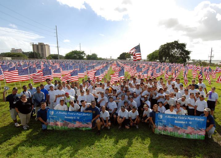 | Keywords: US Navy 071205-N-5476H-044 Students from the Hawaii National Guard Youth Challenge Academy and volunteers from the Hawaii Job Corp pose for a group photo after placing ribbons and flags for the Healing Field Flag Memorial.jpg en PEARL HARBOR Hawaii Dec 5 2007 Students from the Hawaii National Guard Youth Challenge Academy and volunteers from the Hawaii Job Corp pose for a group photo after placing ribbons and flags for the Healing Field Flag Memorial where 2 408 U S flags were placed in the ground in commemoration of those who gave their lives on that historic day in 1941 Dec 7 2007 marks the 66th anniversary of the attack on Pearl Harbor U S Navy photo by Mass Communication Specialist 2nd Class Michael Hight Released 2007-12-05 071205-N-5476H-044 Navy http //www navy mil/view_image asp id 53673 U S Navy photo by Mass Communication Specialist 2nd Class Michael Hight PD-USGov-Military-Navy 66th anniversary of Pearl Harbor attack Images from US Navy location Pearl Harbor Hawaii |
