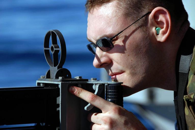 | Keywords: US Navy 080119-N-5384B-013 Gunner's Mate 3rd Class Kyle Fouts, assigned to the weapon's department aboard the Nimitz-class nuclear-powered aircraft carrier USS Abraham Lincoln (CVN 72), sights a .50-caliber machine gun.jpg en PACIFIC OCEAN Jan 19 2008 Gunner's Mate 3rd Class Kyle Fouts assigned to the weapon's department aboard the Nimitz-class nuclear-powered aircraft carrier USS Abraham Lincoln CVN 72 sights a 50-caliber machine gun on a floating drum during a killer barrel exercise Abraham Lincoln is participating in a joint task force exercise off the coast of Southern California involving several armed services U S Navy photo by Mass Communication Specialist 3rd Class Justin R Blake Released 2008-01-19 080119-N-5384B-013 Navy http //www navy mil/view_image asp id 54700 U S Navy photo by Mass Communication Specialist 3rd Class Justin R Blake PD-USGov-Military-Navy Browning M2 of the US Navy Aboard USS Abraham Lincoln CVN-72 Iron sights Aiming |
