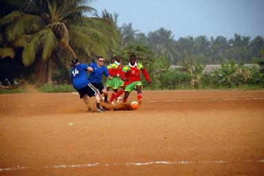 Keywords: US Navy 080128-N-0193M-684 Sailors stationed aboard the high speed vessel (HSV) 2 Swift, in blue, and Togolese 1st Infantry Battalion, in red, battle it out for the ball in a friendly soccer game during the vessel's first port.jpg en LOME Togo Jan 28 2008 Sailors stationed aboard the high speed vessel HSV 2 Swift in blue and Togolese 1st Infantry Battalion in red battle it out for the ball in a friendly soccer game during the vessel's first port call for Africa Partnership Station APS The red team won 4-2 As a part of the Navy's new cooperative maritime strategy APS is a multi-national effort to bring the latest training and techniques to maritime professionals in nine West and Central African countries through building transparent partnerships U S Navy photo by Mass Communication Specialist 2nd Class Elizabeth Merriam Released 2008-01-28 080128-N-0193M-684 Navy http //www navy mil/view_image asp id 54978 U S Navy photo by Mass Communication Specialist 2nd Class Elizabeth Merriam PD-USGov-Military-Navy United States Navy in Lomé Aboard HSV-2 Swift Military of Togo Association football in Togo Association football in the United States Navy Africa Partnership Station 2008 |
