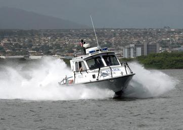 Keywords: US Navy 080130-N-9758L-159 Personnel assigned to Harbor Security on board Naval Station Pearl Harbor, perform high-speed maneuvers on a Seaark Dauntless security boat while patrolling the Harbor.jpg en PEARL HARBOR Hawaii Jan 30 2008 Personnel assigned to Harbor Security on board Naval Station Pearl Harbor perform high-speed maneuvers on a Seaark Dauntless security boat while patrolling the Harbor Harbor Security protects the harbor and its assets from threats on land and sea and act as security escorts for all vessels arriving and departing Pearl Harbor U S Navy photo by Mass Communication Specialist 2nd Class Michael A Lantron Released 2008-01-30 080130-N-9758L-159 Navy http //www navy mil/view_image asp id 54973 U S Navy photo by Mass Communication Specialist 2nd Class Michael A Lantron PD-USGov-Military-Navy 2008 in Pearl Harbor Images from US Navy location Pearl Harbor Hawaii Police boats in the United States |