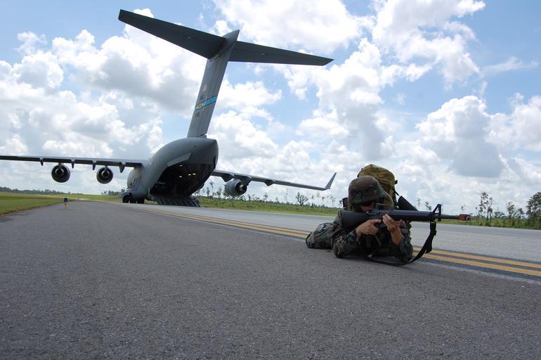| Keywords: US Navy 080614-N-1057H-195 Sailors assigned to Naval Mobile Construction Battalion (NMCB) 11 set up a secure 360-degree perimeter around the U.S. Air Force C-17 aircraft.jpg en CAMP SHELBY Miss June 14 2008 Sailors assigned to Naval Mobile Construction Battalion NMCB 11 set up a secure 360-degree perimeter around the U S Air Force C-17 aircraft after sweeping the air strip at Camp Shelby as part of a field training exercise U S Navy photo by Mass Communication Specialist 2nd Class Erick S Holmes Released 2008-06-14 080614-N-1057H-195 Navy http //www navy mil/view_image asp id 60940 U S Navy photo by Mass Communication Specialist 2nd Class Erick S Holmes PD-USGov-Military-Navy Camp Shelby Naval Mobile Construction Battalion 11 |