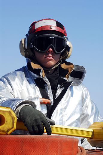 Keywords: US Navy 080620-N-2610F-001 Aviation Boatswain's Mate Airman Patrick Dent observes flight operations while standing in a crash and salvage hot-suit-man watch on the flight deck aboard the Nimitz-class aircraft carrier USS John C.jpg en PACIFIC OCEAN June 20 2008 Aviation Boatswain's Mate Airman Patrick Dent observes flight operations while standing in a crash and salvage hot-suit-man watch on the flight deck aboard the Nimitz-class aircraft carrier USS John C Stennis CVN 74 Hot-suit men stand firefighting watches during flight operations in the event of an aircraft emergency Stennis and multiple embarked fleet replacement squadrons are conducting fleet replacement squadron carrier qualifications FRSCQ off the coast of Southern California FRSCQ's are conducted to qualify naval aviators in day and night carrier operations in the aircraft they will fly during their aviation career U S Navy photo by Mass Communication Specialist 2nd Class Elliott Fabrizio Released 2008-06-20 080620-N-2610F-001 Navy http //www navy mil/view_image asp id 60514 U S Navy photo by Mass Communication Specialist 2nd Class Elliott Fabrizio PD-USGov-Military-Navy Aviation Boatswain's Mates Aboard USS John C Stennis CVN-74
