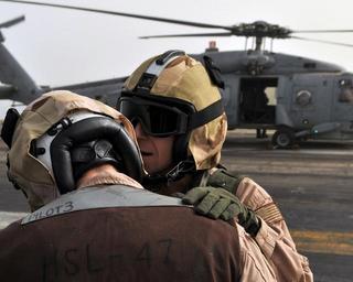 | Keywords: US Navy 080702-N-7981E-087 Chief Aviation Warfare Systems Operator Robert Abplanalp, assigned to the.jpg en PERSIAN GULF July 2 2008 Chief Aviation Warfare Systems Operator Robert Abplanalp assigned to the Saberhawks of Helicopter Anti-submarine Squadron Light HSL 47 communicates with a pilot as they prepare an SH-60B Seahawk for an aerial change of command ceremony on the flight deck of the Nimitz-class aircraft carrier USS Abraham Lincoln CVN 72 Lincoln is deployed to the U S 5th Fleet area of responsibility supporting maritime security operations U S Navy photo by Mass Communications Specialist 2nd Class James R Evans Released 2008-07-02 080702-N-7981E-087 Navy http //www navy mil/view_image asp id 61058 U S Navy photo by Mass Communications Specialist 2nd Class James R Evans PD-USGov-Military-Navy Aviation Warfare Systems Operator Aboard USS Abraham Lincoln CVN-72 Change of command |