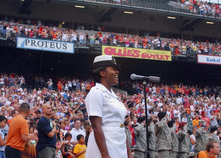 Keywords: US Navy 080704-N-2257C-036 Chief Musician Yolanda Pelzer sings the national anthem.jpg en BALTIMORE Md July 4 2008 Chief Musician Yolanda Pelzer sings the national anthem to begin the Friday afternoon baseball game between the Baltimore Orioles and Texas Rangers as service members from Walter Reed National Medical Center render honors in the background U S Navy Photo by Musician 1st Class Shana E Catandella Released 2008-07-04 080704-N-2257C-036 Navy http //www navy mil/view_image asp id 61159 U S Navy Photo by Musician 1st Class Shana E Catandella PD-USGov-Military-Navy 2008 in Baltimore Images from US Navy location BALTIMORE Md Oriole Park at Camden Yards 2008 Baltimore Orioles season |