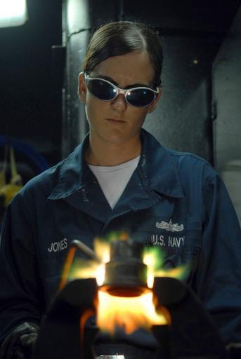 | Keywords: US Navy 080705-N-1635S-003 Hull Technician Fireman Donna Jones, from Mentone, Texas, performs a brazing job in the pipe shop aboard the Nimitz-class aircraft carrier USS Ronald Reagan (CVN 76).jpg en PACIFIC OCEAN July 5 2008 Hull Technician Fireman Donna Jones from Mentone Texas performs a brazing job in the pipe shop aboard the Nimitz-class aircraft carrier USS Ronald Reagan CVN 76 Jones was selected by her chain of command as the Hard Charger of the Month for June The Ronald Reagan Carrier Strike Group is on a scheduled deployment in the U S 7th Fleet area of responsibility U S Navy photo by Mass Communication Specialist 3rd Class Joshua Scott Released 2008-07-05 080705-N-1635S-003 Navy http //www navy mil/view_image asp id 61026 U S Navy photo by Mass Communication Specialist 3rd Class Joshua Scott PD-USGov-Military-Navy Taken with Nikon D200 Brazing Aboard USS Ronald Reagan CVN-76 Mentone Texas |